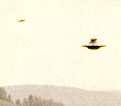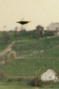 In July of 2000 Silvano Lehmann, in the presence of Billy Meier, sighted a beamship-style UFO, which Billy had again been alerted to through mental telepathy from the craft's occupant. The event is described here, along with a photo that Lehmann took at the time, which has enough resolution to show the distinct saucer-shape of the craft.
