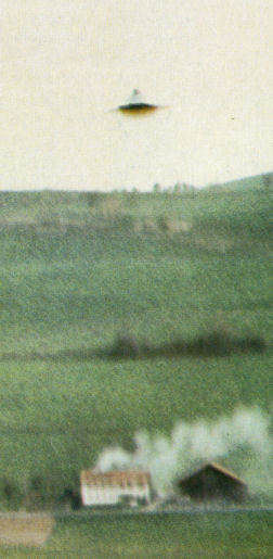 5A. NICE SAUCER PICTURES. "Billy's still photos show classic disc-shaped UFOs in daylit country scenery. They are beautiful pictures which fit in with the general expectation of what a flying saucer should look like." Here, Maccabee seems to have been implying that since the general disc-like shape for UFOs had been frequently reported for nearly three decades before Billy's Swiss contacts commenced, the fact that most of his contactors' craft displayed that general shape indicts Billy of having utilized models of that general design. However, this implication lacks common sense, and is "reaching" much too far. Since 1950, and both before and after 1975, there have been many sightings of UFOs of the same general shape as the flying saucers first reported in 1947. It obviously makes no more sense to reject all sightings and photos of UFO craft that resemble the shape of those first reported than to reject all photos of automobiles built after 1930, say, as real whose components include 4 wheels, a cab and an engine up front.