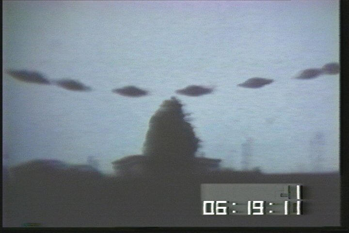 Additionally, by 1981 Meier had acquired the use of a video camera in addition to a different still-picture camera, and was given the opportunity to use both on April 3rd of 1981. Twice when taking the video footage he gradually zoomed in on the "wedding cake" UFO (E.g., see Elders & Elders, 1983, p. 70; Stevens, 1982, pp. 526-527), which was hovering just in front of a tree. By observing how the different stretches of ground successively come into focus at increasing distances from the camera, until the UFO and tree are both in focus at the camera's greatest focal length, one can be certain that the UFO was no small model close to the camera. (A copy of the video may be available from Meier's support group in Schmidrüti, or a video of a projection of it from the conveners of the (1999) International UFO Congress.)