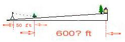 | Fig. 9b. A sketch, not to scale, of the locations of the camera, hypothesized small tree, and large tree & house in the distance. |