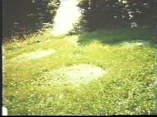 7B. BEAMSHIP-INDUCED "CROP" CIRCLES. There was a circular area of dead grass left behind in connection with the Ed Walters UFO case (Walters & Walters, 1994, p. 143, Photo F), and so Maccabee mentioned the "saucer nests" many times left behind after Meier's many contacts for which the beamship had descended to ground level. His apparent criticisms of this were that (a) the grass within the swirls of pressed-down meadow grass in Meier's case did not die, (b) the swirls' diameters of about 6 feet were much smaller than the reported 23-foot diameter of the beamships, and (c) no tests were afterwards performed on the swirled grass or soil underneath.