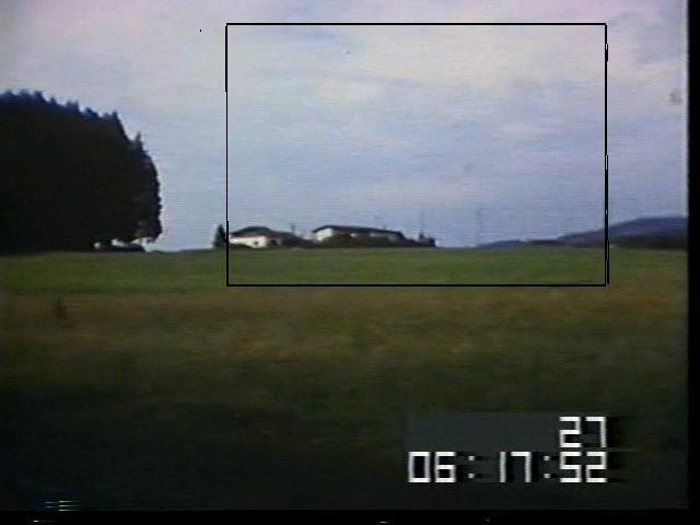 | Fig. 10. A wider-angle view of the same general scene viewed by Meier's 8mm movie-film camera (rectangle). The tree was no longer present in 1979. From Genesis III's "Beamship: The Movie Footage." |
