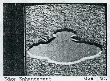 Continuing with Korff's treatment, he then saw to it that the scanned photo was subjected to an edge-enhancer routine in which all variations of intensity and contrast are removed except along discernible edges, which are enhanced in this case through a computer routine that brightens the upper side of all discernible edges and blackens their lower sides. That produced the image below. Through this process, it can appear to the uninitiated reader that surely the limbs should show up had they crossed in front of the craft.