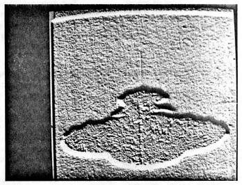 | GSW "enhanced" image in Korff (Dec., 1980). Notice line on front side. | GSW "enhanced" image in Korff & Moore's booklet of 28 March, 1981. Compare with image on left. Easy come, easy go with those pesky vertical lines! |