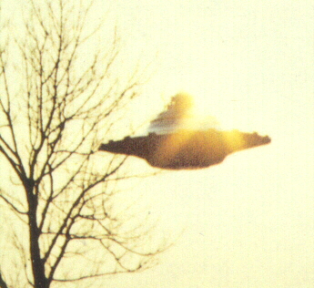 Off-hand, this 8mm movie-film segment may appear to show a model UFO suspended above a model or small potted tree and oscillating back and forth just above the tree's crown. Apparently, this is just what it was intended to look like, for those with no interest in taking a second and third look. The respected ufologist Bruce Maccabee was the first to carefully assess the length of suspension line, if it were a model UFO, that would yield the observed period of oscillation, and which would in turn dictate a model diameter around 1 ft and a tree height of between 2 and 3 ft. He was careful to conclude that the observations were consistent with such a model UFO without ruling out a much larger, genuine beamship and tree much farther from the camera (Maccabee, 1989, 2002). However, the titles to his write-ups tend to imply that the reader should conclude it was a model UFO suspended from an undiscernable string.