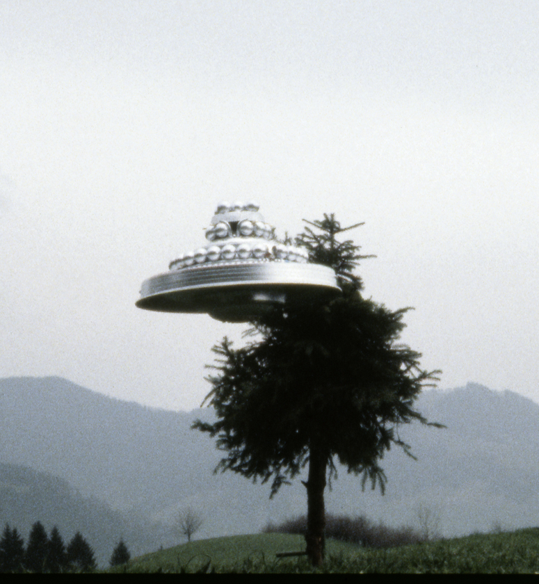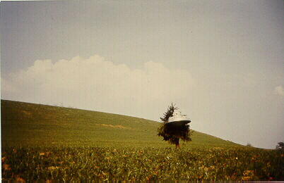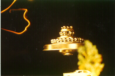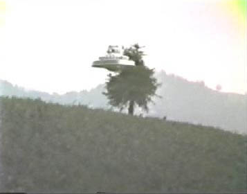 12. Wedding-cake craft in front of tree. Brightness enhanced. No zoom used at this time. From FIGU's "Ausschnitte-Reportage" videotape. |