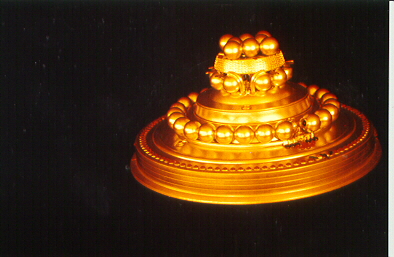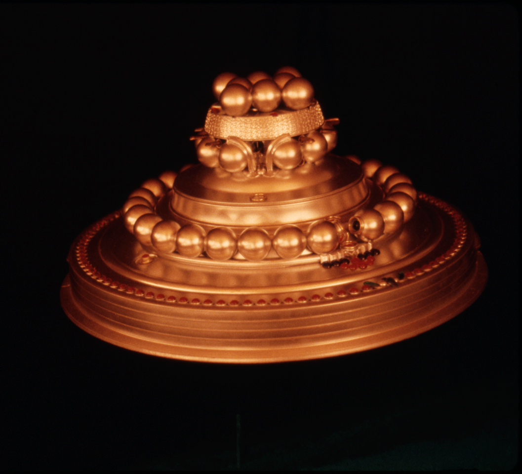 Korff went on to suggest that the circumferential band between the 2nd and 3rd tiers of spheres was a bracelet, and that protrusions extending out from between some of the spheres below it were carpet tacks. He presumably did not even consider that he had been duped by an alien strategy of plausible deniability, and did not point out any of the several convincing points of reality shown on this web page, which show that the width of the wedding-cake craft was at least an order of magnitude greater than that of a garbage-can lid. He also did not seem to be aware that by 1980-81 Meier was using the Ricoh camera, whose focusing mechanism worked properly unlike that of the Olympus camera he had used in 1975-76.