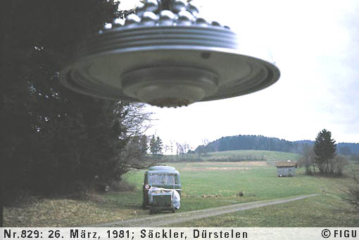 The event of 26 March 1981. Early in the morning on this day Billy drove out in his little tractor to the near vicinity of Dürstelen, some 5 or 6 miles southwest of his residence at Schmidrüti. Behind his tractor he pulled a small van, which he had by then also acquired, in which he could carry his camera and video equipment. He had a mental-telepathy appointment for another photo opportunity of Semjase's beamship of the "wedding-cake" type.