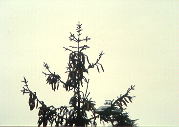 "The tree is one of the European true firs -- Abies species. The picture has only a portion of the top of the crown 10 to 15 feet. There could be anywhere from 10 to 50 feet of tree bole below the picture." (March, 2006)