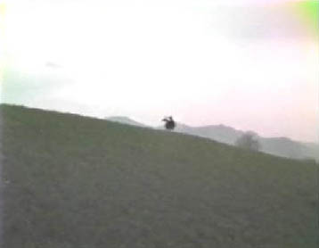So the video-taping ended at this point, and unfortunately Meier did not get to tape the departure of the craft. It is seen above that he twice tried to persuade Quetzal to move the remote-controlled craft while the video-tape camera ran, but Quetzal never did. This may have been part of the Pleiadian/Plejaren strategy of plausible deniability, so that skeptics who can't accept the reality of the UFO phenomenon could have something to be suspicious about. This might allow such a skeptic to assume the UFO was a large model somehow attached rigidly to the tree.
