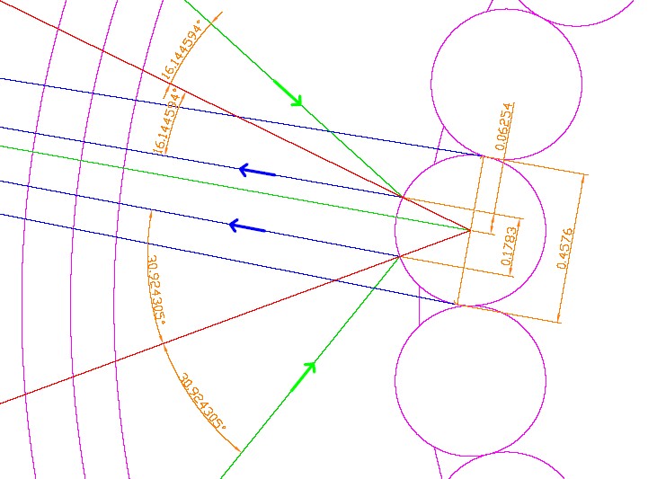 5. Close-up of ray diagram at the closest sphere on the lower tier. Draftsmanship by J.P. Lagasse. |