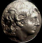 Coin showing the ram's horn on the side of Alexander's head. |