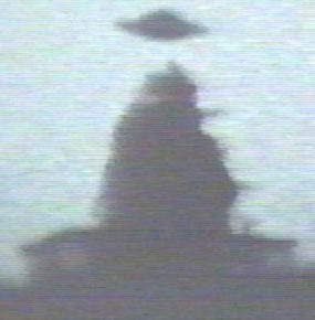 THE UFO's "ANTENNA".  It may be necessary to briefly discuss the antenna-like appendage atop the beamship, or UFO, seen in Fig. 10, as the skeptic may assume it to be a support rod on a model UFO to which an invisible line, like fish-line leader, could be attached. It is present also in the photo series just presented, and is best seen in photo #119 (Fig. 12, bottom). Since in this series the UFO was a large object and no model, it follows that the same UFO in Fig. 10 was no small model either. Thus this appendage may serve some UFO function. When Meier asked his ET contactor about it, he was told it was part of an energy-collecting device. Whether it was or wasn't, I don't know, but it was no model-support rod.