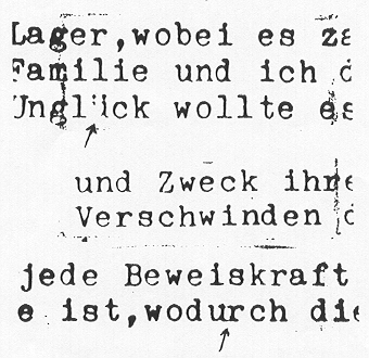 (d) In the typescript of the Rashid letter the left side of its "ü" is very weak 12 out of 12 times (see Fig. 2, 3rd line in German, for an example), and also the lower-left side of its "ä" 7 out of 8 times. These imperfections do not appear in the Contact Reports.
